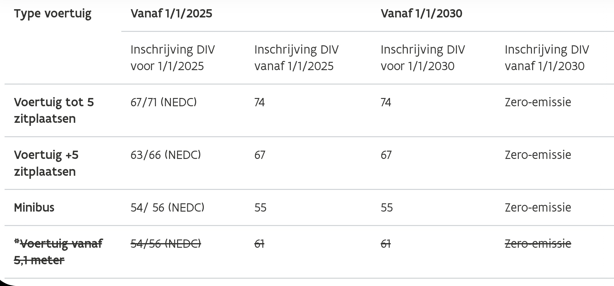 - Au moins 67(WLTP)/71(NEDC) si immatriculé en tant que taxi à la DIV avant le 1er janvier 2025.