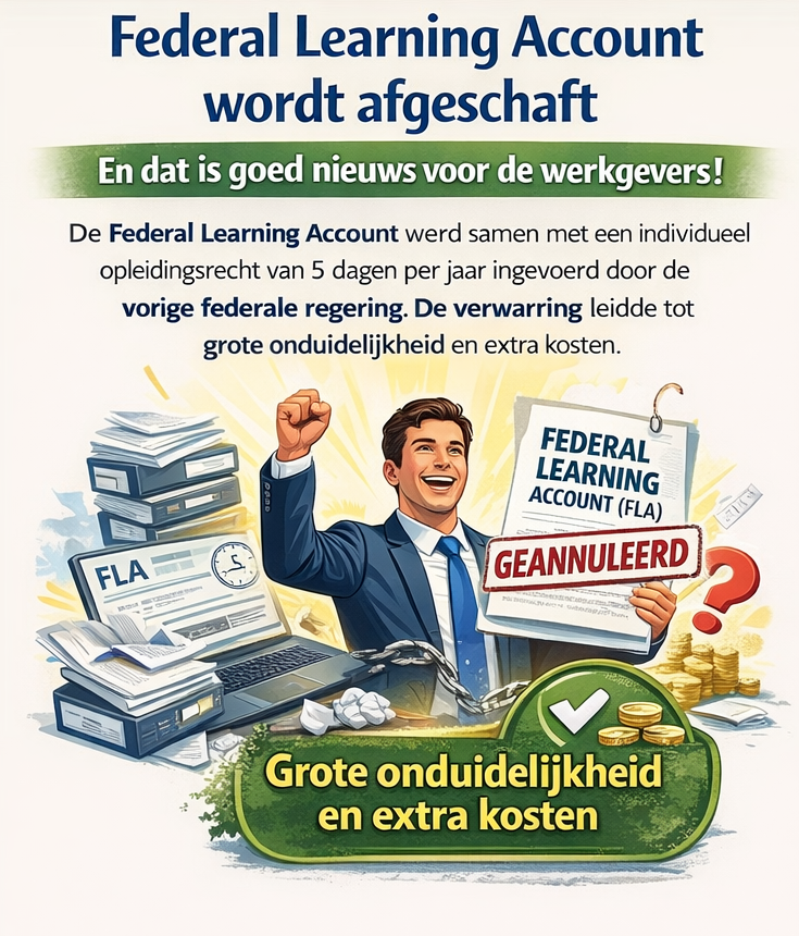 16/12/2025 - Federal Learning Account (FLA) wordt afgeschaft En dat is goed nieuws voor de werkgevers! lees meer